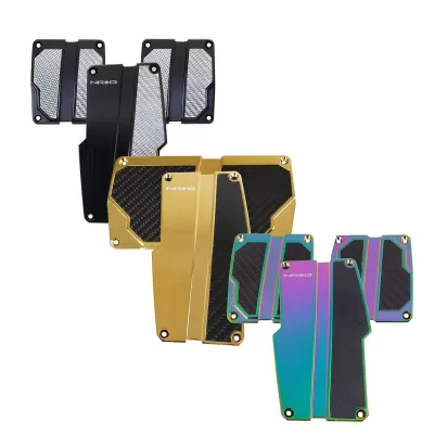 These NRG Pedal Sets are made from solid aluminum for light weight and durability. Real carbon fiber is used to accent the design of the pedals and add a race look to any car. Available in kits for both manual and automatic transmission equipped cars.