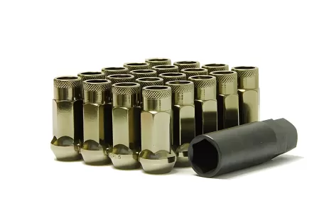 The Muteki SR48 Lug Nuts are a great option for enthusiasts who want a strong, OEM quality lug nut that adds some style too. Made from Cold Forged Chrome Vanadium, these lug nuts provide superior strength to aluminum lug nuts, perfect for those who track their cars or swap wheels often. Also, being that they feature an open end they can be used on extended wheel studs without problems, and the knurled end allows you to grip the SR48 lugs even if you're wearing gloves.